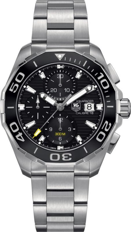 Model: CAY211A.BA0928 - CASE = [Material:Stainless Steel], [Case Diameter:43], [Bezel:Uni-Directional Rotating], [Case Back:Solid], [Water Resistant:300 Meters - 1000 Feet], [Crystal:Scratch Resistant Sapphire], DIAL = [Color:Black], MOVEMENT = [Type:Automatic], [Crown:Screw Down], BAND = [Type:Brushed Stainless Steel], (In Stock - Ready to ship.)