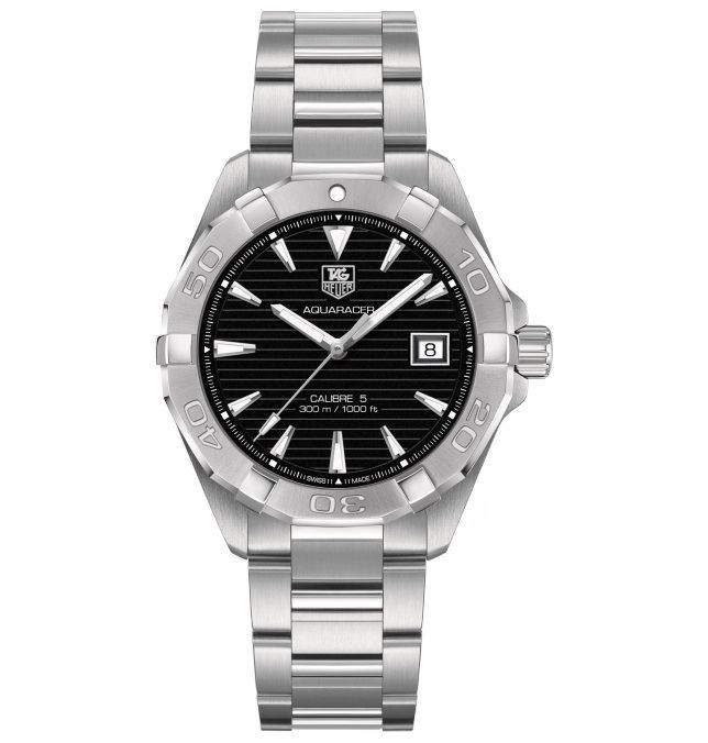 Model: WAY2110.BA0910 - CASE = [Material:Brushed and Polished Stainless Steel], [Case Diameter:40.5], [Bezel:Uni-Directional Rotating, Engraved with 60 Minute Scale], [Case Back:Solid], [Water Resistant:300 Meters / 1000 Feet], [Crystal:Scratch Resistant Sapphire], DIAL = [Color:Black Linear Design with Date at 3], MOVEMENT = [Type:Automatic Self Winding Calibre 5 with 38 to 46 Hour Power Reserve], [Crown:Screw Down], BAND = [Clasp:Deployment Buckle], [Type:Brushed and Polished Stainless Steel], (Usually ships in 1 to 2 business days.)