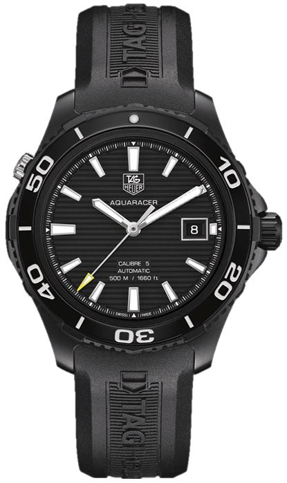 Model: WAK2180.FT6027 - CASE = [Material:Black PVD Titanium], [Case Diameter:41], [Bezel:Black Ceramic], [Case Back:Solid], [Water Resistant:500 Meters - 1650 Feet], [Crystal:Scratch Resistant Sapphire], DIAL = [Color:Black], MOVEMENT = [Type:Automatic Self Winding Calibre 5], BAND = [Clasp:Deployment Buckle], [Type:Black Rubber], (Usually ships in 1 to 2 weeks.)