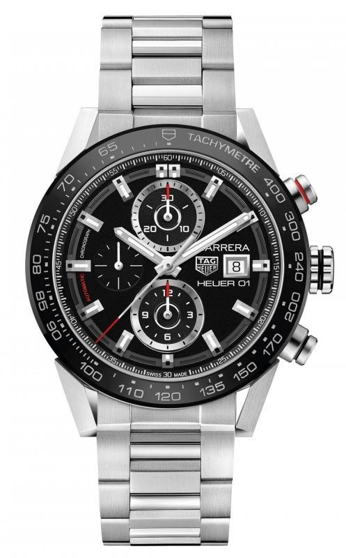Model: CAR201Z.BA0714 - CASE = [Material:Stainless Steel], [Case Diameter:43], [Bezel:Uni-Directional Rotating], [Case Back:Solid], [Water Resistant:100 Meters - 330 Feet], [Crystal:Scratch Resistant Sapphire], DIAL = [Color:Black], MOVEMENT = [Type:Automatic Chronograph], [Crown:Screw Down], BAND = [Clasp:Folding], [Type:Stainless Steel], (Usually ships in 1 to 2 weeks.)