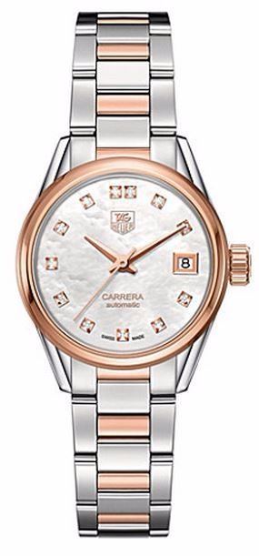 Model: WAR2452.BD0772 - CASE = [Material:Polished Stainless Steel and Rose Gold], [Case Diameter:28], [Bezel:Fixed, Solid 18k Rose Gold], [Case Back:See-Thru sapphire Crystal], [Water Resistant:100 Meters / 330 Feet], [Crystal:Scratch Resistant Sapphire],; DIAL = [Color:White Mother of Pearl with 12 Diamond Hour Markers (Total Weight 0.10ct), Date at 3],; MOVEMENT = [Type:Automatic Self Winding Calibre 9 with 42 Hour Power Reserve],; BAND = [Clasp:Deployment Buckle], [Type:Polished Stainless Steel and Rose Gold], (Usually ships in 1 to 2 weeks.)