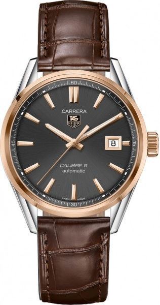Model: WAR215E.FC6181 - CASE = [Material:Polished Stainless Steel], [Case Diameter:39], [Bezel:Solid 18k Rose Gold], [Case Back:See-thru Sapphire Crystal], [Water Resistant:100 Meters/330 Feet], [Crystal:Scratch Resistant Sapphire], DIAL = [Color:Anthracite with Day at 3, Rose Gold Tone Hands and Markers], MOVEMENT = [Type:Automatic Self Winding Winding Calibre 5 with Approx. 38Hr. Power Reserve], [Crown:Winding], BAND = [Clasp:Deployment], [Type:Brown Alligator Leather], (Usually ships in 2 to 4 weeks.)