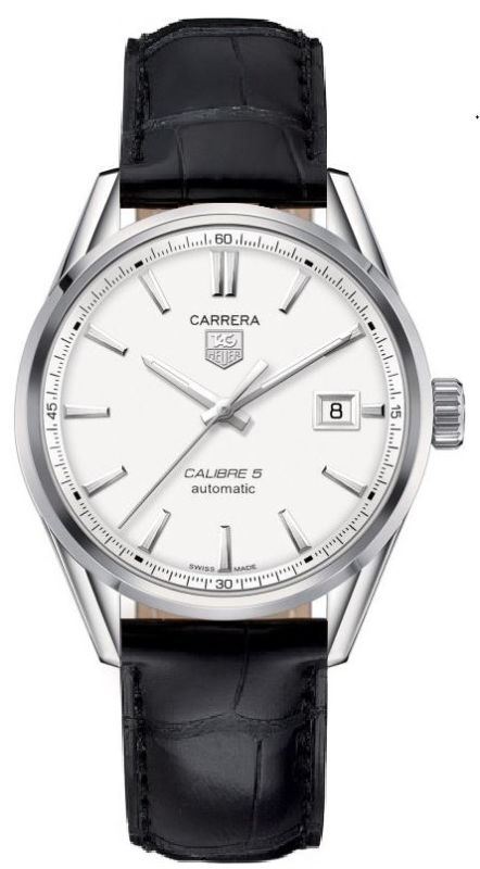 Model: WAR211B.FC6180 - CASE = [Material:Polished Stainless Steel], [Case Diameter:39], [Case Back:See-thru Sapphire Crystal], [Water Resistant:100 Meters/330 Feet], [Crystal:Scratch Resistant Sapphire], DIAL = [Color:Silver with Date at 3], MOVEMENT = [Type:Automatic Self Winding Winding Calibre 5 with Approx. 38Hr. Power Reserve], [Crown:Winding], BAND = [Clasp:Deployment], [Type:Black Alligator Leather], (In Stock - Ready to ship.)