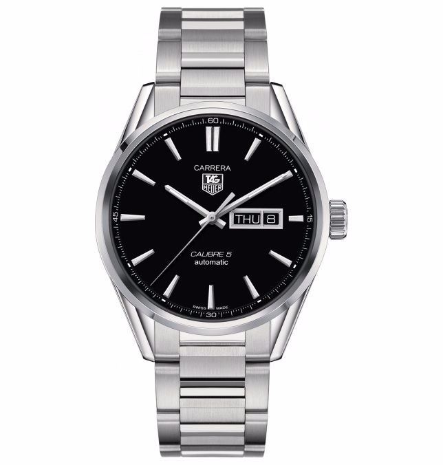 Model: WAR201A.BA0723 - CASE = [Material:Polished Stainless Steel], [Case Diameter:41], [Case Back:See-thru Sapphire Crystal], [Water Resistant:100 Meters/330 Feet], [Crystal:Scratch Resistant Sapphire],; DIAL = [Color:Black with Day-Date at 3],; MOVEMENT = [Type:Automatic Self Winding Winding Calibre 5 with Approx. 38Hr. Power Reserve], [Crown:Winding],; BAND = [Clasp:Deployment], [Type:Brushed and Polished Stainless Steel], (In Stock - Ready to ship.)