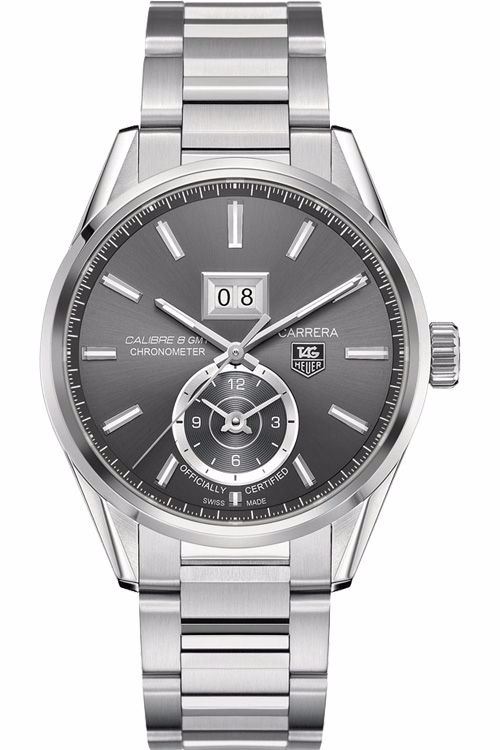Model: WAR5012.BA0723 - CASE = [Material:Brushed and Polished Stainless Steel], [Case Diameter:41], [Bezel:Fixed], [Case Back:See-Thru Sapphire], [Water Resistant:100 Meters / 330 Feet], [Crystal:Scratch Resistant Sapphire],; DIAL = [Color:Anthracite with Grande Date at 12, GMT Second Time Zone Feature at 6],; MOVEMENT = [Type:Automatic Self Winding Chronometer C.O.S.C. - Calibre 8 with 42Hr. Power Reserve],; BAND = [Clasp:Deployment], [Type:Brushed and Polished Stainless Steel], (Usually ships in 2 to 4 weeks.)