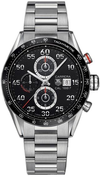 Model: CAR2A10.BA0799 - CASE = [Material:Polished Stainless Steel], [Case Diameter:43], [Case Thickness:16mm], [Bezel:Ceramic, Tachmeter Scale], [Case Back:See-Thru Sapphire Crystal], [Water Resistant:100 Meters - 330 Feet], [Crystal:Scratch Resistant Sapphire],; DIAL = [Color:Black Red Accented Chronograph with dat at 3],; MOVEMENT = [Type:Automatic Self Winding Calibre 1887],; BAND = [Clasp:Deployment Buckle], [Type:Brushed and Polished H-Shaped], (In Stock - Ready to ship.)