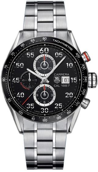 Model: CAR2A10.BA0796 - CASE = [Material:Polished Stainless Steel], [Case Diameter:43], [Case Thickness:16mm], [Bezel:Ceramic, Tachmeter Scale], [Case Back:See-Thru Sapphire Crystal], [Water Resistant:100 Meters - 330 Feet], [Crystal:Scratch Resistant Sapphire],; DIAL = [Color:Black Red Accented Chronograph with dat at 3],; MOVEMENT = [Type:Automatic Self Winding Calibre 1887],; BAND = [Clasp:Deployment Buckle], [Type:Brushed and Polished Stainless Steel], (In Stock - Ready to ship.)
