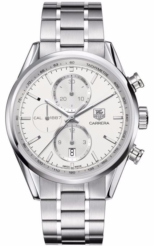 Model: CAR2111.BA0720 - CASE = [Material:Polished Stainless Steel], [Case Diameter:41], [Case Thickness:16mm], [Bezel:Fixed], [Case Back:See-thru Sapphire crystal], [Water Resistant:100 Meters / 330 Feet], [Crystal:Scratch Resistant Sapphire],; DIAL = [Color:Silver Chronograph],; MOVEMENT = [Type:Automatic Self Winding Calibre 1887], [Crown:Fluted Winding],; BAND = [Clasp:Foldover Deployment Buckle], [Type:Brushed and Polished Stainless Steel], (In Stock - Ready to ship.)