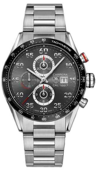 Model: CAR2A11.BA0799 - CASE = [Material:Polished Stainless Steel], [Case Diameter:43], [Case Thickness:16mm], [Bezel:Ceramic, Tachmeter Scale], [Case Back:See-Thru Sapphire Crystal], [Water Resistant:100 Meters - 330 Feet], [Crystal:Scratch Resistant Sapphire], DIAL = [Color:Anthracite Red Accented Chronograph with dat at 3], MOVEMENT = [Type:Automatic Self Winding Calibre 1887], BAND = [Clasp:Deployment Buckle], [Type:Brushed and Polished H-Shaped], (In Stock - Ready to ship.)
