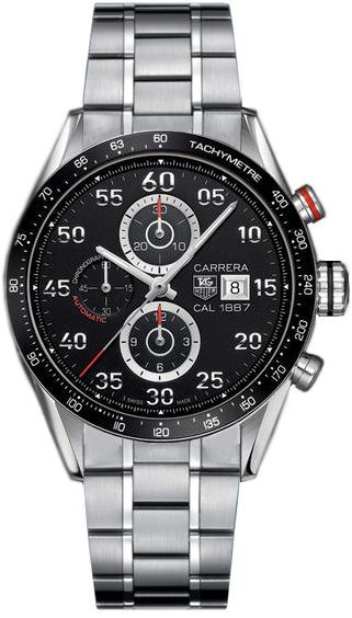 Model: CAR2A10.BA0796 - CASE = [Material:Polished Stainless Steel], [Case Diameter:43], [Case Thickness:16mm], [Bezel:Ceramic, Tachmeter Scale], [Case Back:See-Thru Sapphire Crystal], [Water Resistant:100 Meters - 330 Feet], [Crystal:Scratch Resistant Sapphire], DIAL = [Color:Black Red Accented Chronograph with dat at 3], MOVEMENT = [Type:Automatic Self Winding Calibre 1887], BAND = [Clasp:Deployment Buckle], [Type:Brushed and Polished Stainless Steel], (In Stock - Ready to ship.)