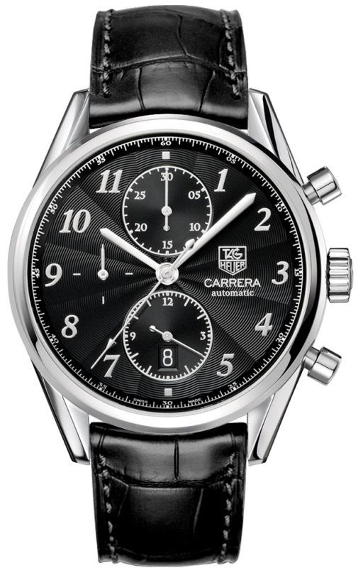 Model: CAS2110.FC6266 - CASE = [Material:Stainless Steel], [Case Diameter:41], [Case Thickness:16mm], [Case Back:Solid], [Water Resistant:100 Meters/330 Feet], [Crystal:Scratch Resistant Sapphire], DIAL = [Color:Black], MOVEMENT = [Type:Automatic Self Winding], [Crown:Screw Down], BAND = [Clasp:Deployment], [Type:Crocodile Black Leather], (In Stock - Ready to ship.)