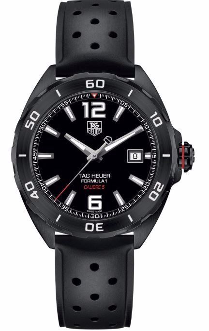 Model: WAZ2115.FT8023 - CASE = [Material:Stainless Steel], [Case Diameter:41], [Bezel:Fixed], [Case Back:Solid], [Water Resistant:200 Meters - 660 Feet], [Crystal:Scratch Resistant Sapphire],; DIAL = [Color:Black],; MOVEMENT = [Type:Automatic], [Crown:Screw Down],; BAND = [Clasp:Tang], [Type:Black rubber], (In Stock - Ready to ship.)