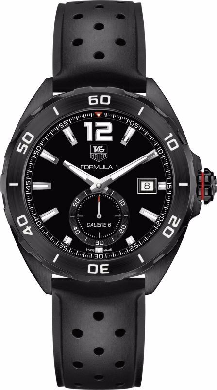 Model: WAZ2112.FT8023 - CASE = [Material:Black Titanium Carbide Coated Steel], [Case Diameter:41], [Bezel:Uni-Directional Rotating], [Case Back:Solid], [Water Resistant:200 Meters / 650 Feet], [Crystal:Scratch Resistant Sapphire],; DIAL = [Color:Black with Date at 3 and Seconds Sub-Dial at 6],; MOVEMENT = [Type:Automatic Self Winding Calibre 6 with 38 to 44 Hour Power Reserve], [Crown:Screw Down],; BAND = [Clasp:Tang], [Type:Black Perforated Rubber],  (Usually ships in 4 to 8 weeks.)