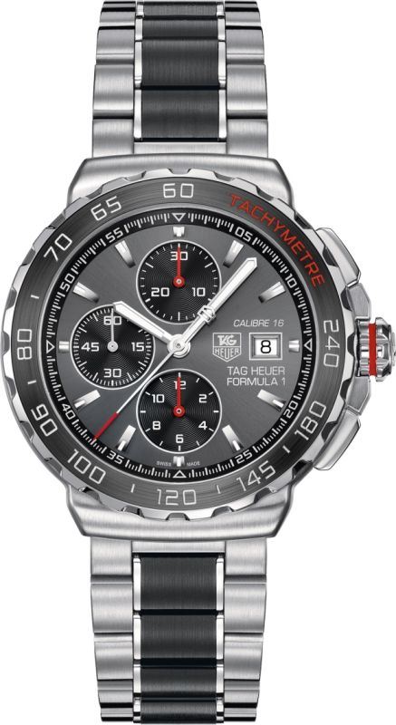 Model: CAU2011.BA0873 - CASE = [Material:Brushed Stainless Steel], [Case Diameter:44], [Bezel:Black Tachymetre Ceramic], [Case Back:Solid], [Water Resistant:200 Meters / 660 Feet], [Crystal:Scratch Resistant Sapphire], DIAL = [Color:Grey Chronograph with Black Sub-s and Partial Red Hands], MOVEMENT = [Type:Automatic Self Winding Calibre 16], BAND = [Clasp:Deployment Buckle], [Type:Brushed Stainless Steel with Black Ceramic], (In Stock - Ready to ship.)