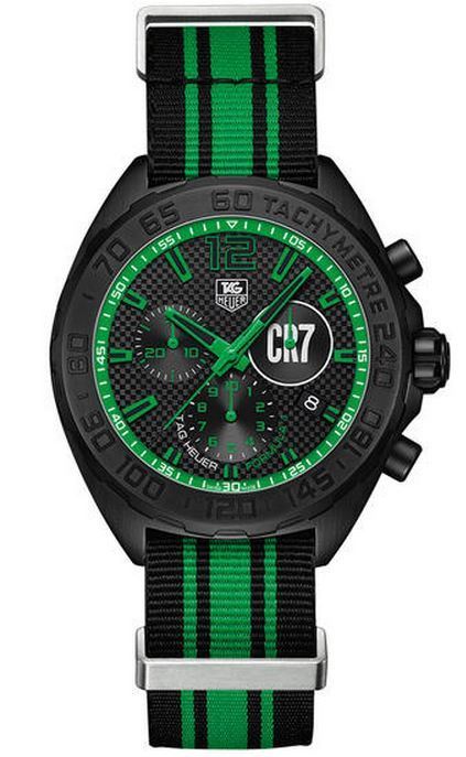 Model: CAZ1113.FC8189 - CASE = [Material:Stainless Steel], [Case Diameter:42], [Bezel:Fixed], [Case Back:Solid], [Water Resistant:200 Meters - 660 Feet], [Crystal:Scratch Resistant Sapphire], DIAL = [Color:Black], MOVEMENT = [Type:Quartz], [Crown:Screw Down], BAND = [Clasp:Tang], [Type:Green And Black Fabric], (In Stock - Ready to ship.)