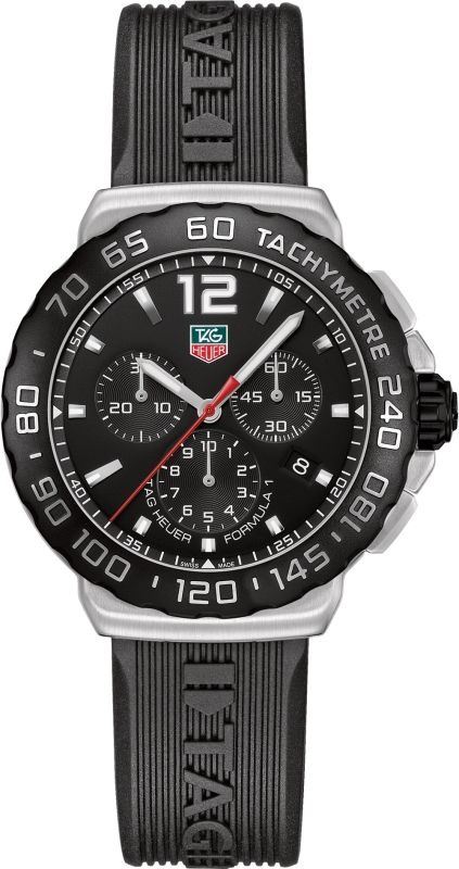 Model: CAU1110.FT6024 - CASE = [Material:Brushed with Polished Stainless Steel], [Case Diameter:42], [Bezel:Fixed], [Case Back:Solid], [Water Resistant:200 Meters - 660 Feet], [Crystal:Scratch Resistant Sapphire],; DIAL = [Color:Black],; MOVEMENT = [Type:Battery Powered Quartz Chronograph],; BAND = [Clasp:Deployment Buckle], [Type:Black Rubber], (In Stock - Ready to ship.)