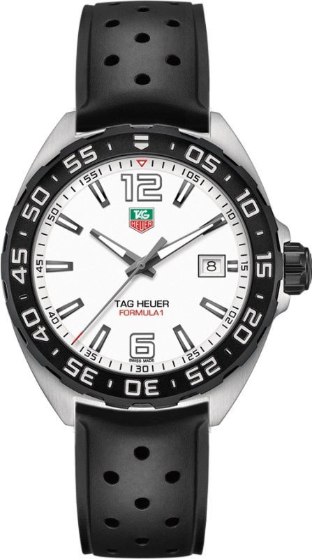 Model: WAZ1111.FT8023 - CASE = [Material:Stainless Steel], [Case Diameter:41], [Bezel:Uni-Directional Rotating], [Case Back:Solid], [Water Resistant:200 Meters - 660 Feet], [Crystal:Scratch Resistant Sapphire], DIAL = [Color:White with Date at 3], MOVEMENT = [Type:Battery Powered Quartz], [Crown:Screw Down], BAND = [Clasp:Tang], [Type:Black Rubber], (In Stock - Ready to ship.)