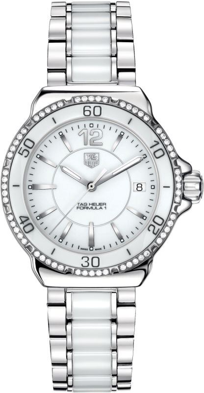 Model: WAH1213.BA0861 - CASE = [Material:Polished Stainless Steel], [Case Diameter:37], [Bezel:Fixed with 60 Diamonds], [Case Back:Solid], [Water Resistant:200 Meters / 660 Feet], [Crystal:Scratch Resistant Sapphire], DIAL = [Color:White], MOVEMENT = [Type:Battery Powered Quartz], [Crown:Screw Down], BAND = [Clasp:Deployment Buckle], [Type:Stainless Steel with White Tone Ceramic],  (In Stock - Ready to ship.)