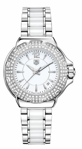 Model: WAH1215.BA0861 - CASE = [Material:Polished Stainless Steel], [Case Diameter:37], [Bezel:Fixed with 120 Diamonds], [Case Back:Solid], [Water Resistant:200 Meters / 660 Feet], [Crystal:Scratch Resistant Sapphire], DIAL = [Color:White], MOVEMENT = [Type:Battery Powered Quartz], [Crown:Screw Down Crown and Helium Escape Valve], BAND = [Clasp:Deployment Buckle], [Type:Stainless Steel with White Tone Ceramic],  (Usually ships in 1 to 2 weeks.)