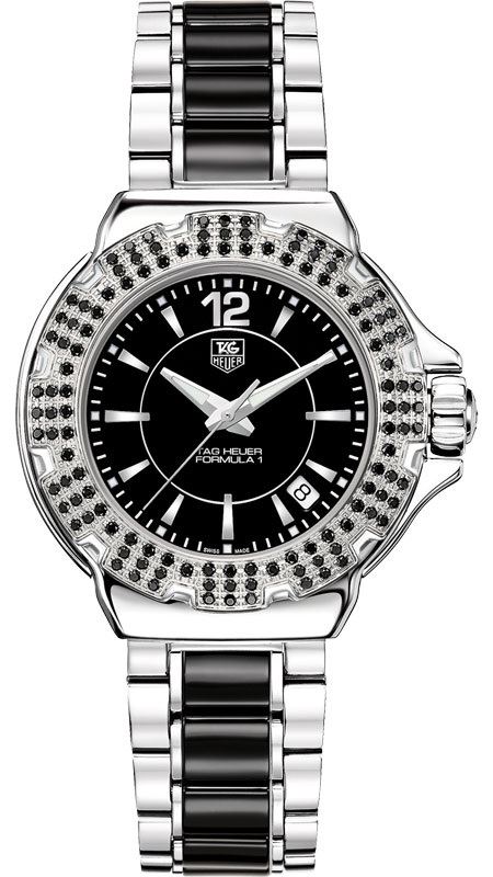 Model: WAH1216.BA0859 - CASE = [Material:Polished Stainless Steel], [Case Diameter:37], [Bezel:120 Full Cut Black Diamonds Set on (.75ct)], [Case Back:Solid], [Water Resistant:200 Meters - 660 Feet], [Crystal:Scratch Resistant Sapphire], DIAL = [Color:Black], MOVEMENT = [Type:Battery Powered Quartz], BAND = [Clasp:Deployment Buckle], [Type:Stainless Steel and Black Ceramic], (In Stock - Ready to ship.)