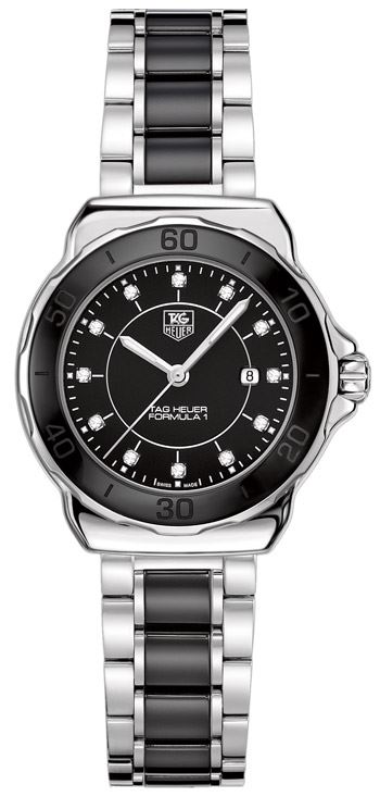 Model: WAH1314.BA0867 - CASE = [Material:Polished Stainless Steel], [Case Diameter:32], [Bezel:Black Ceramic], [Case Back:Solid], [Water Resistant:200 Meters - 660 Feet Water Resistant], [Crystal:Scratch Resistant Sapphire], DIAL = [Color:Black with Diamond Hour Markings], MOVEMENT = [Type:Battery Powered Quartz], BAND = [Clasp:Deployment Buckle], [Type:Stainless Steel and Black Ceramic], (In Stock - Ready to ship.)