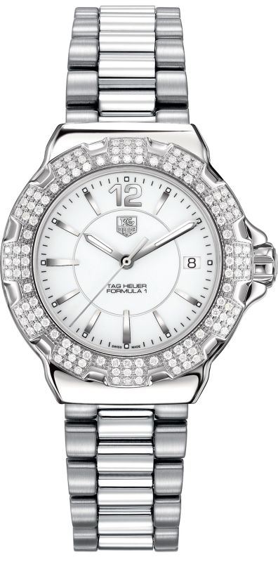 Model: WAH1218.BA0852 - CASE = [Material:Polished Stainless Steel], [Case Diameter:37], [Bezel:Set with 120 (0.75 Carat) Top Wesselton Diamonds], [Case Back:Solid], [Water Resistant:200 Meters / 650 Feet], [Crystal:Scratch Resistant Sapphire], DIAL = [Color:White with Date at 3], MOVEMENT = [Type:Battery Powered Quartz Swiss], [Crown:Screw Down], BAND = [Clasp:Deployment Buckle], [Type:Brushed and Polished Stainless Steel], (In Stock - Ready to ship.)