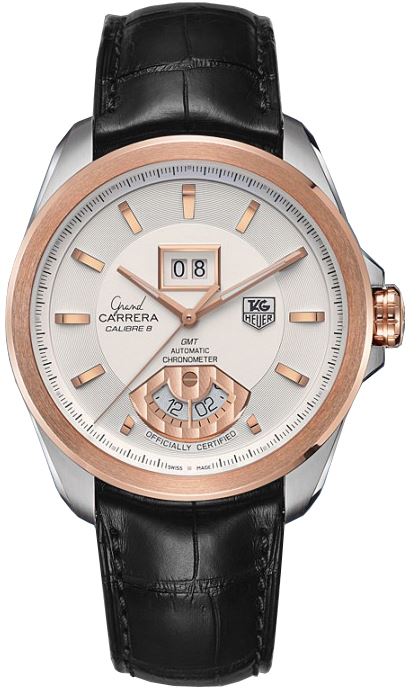 Model: WAV5152.FC6225 - CASE = [Material:Polished with Brushed Stainless Steel and 18K Rose Gold], [Case Diameter:42.5], [Case Thickness:11mm], [Water Resistant:100 Meters - 330 Feet], [Crystal:Scratch Resistant Sapphire], DIAL = [Color:Silver], MOVEMENT = [Type:Automatic Self Winding Chronometer Calibre 8 RS], BAND = [Clasp:Deployment Buckle], [Type:Black Crocdile Leather], (Usually ships in 2 to 4 weeks.)
