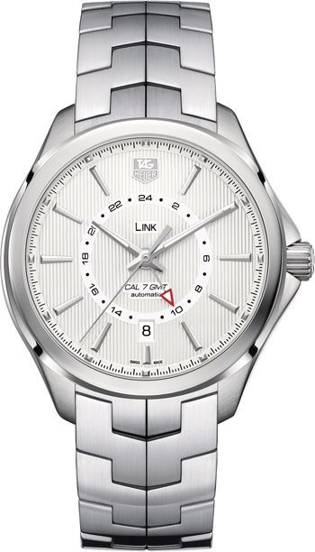 Model: WAT201B.BA0951 - CASE = [Material:Brushed and Polished Stainless Steel], [Case Diameter:42], [Bezel:Fixed], [Case Back:See-Thru Sapphire Crystal], [Water Resistant:100 Meters / 330 Feet], [Crystal:Scratch Resistant Sapphire], DIAL = [Color:Silver Linear Design with Date at 6, GMT Second Time-Zone Feature on Inner Ring Indicatd by Red Tipped Hand.], MOVEMENT = [Type:Automatic Self Winding Calibre 7 with 42 to 46 Hour Power Reserve], [Crown:Screw Down], BAND = [Clasp:Deployment Buckle], [Type:Brushed and Polished Stainless Steel], (Usually ships in 1 to 2 weeks.)
