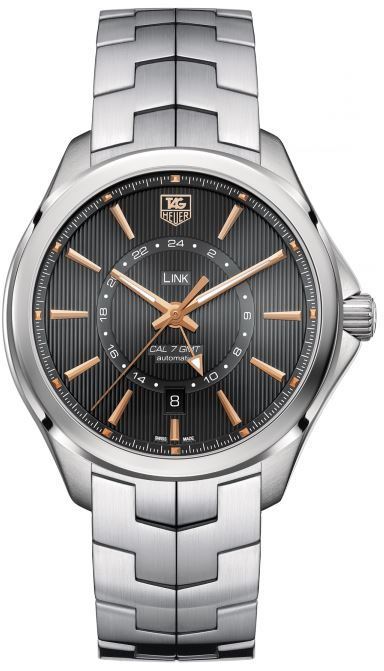 Model: WAT201C.BA0951 - CASE = [Material:Brushed and Polished Stainless Steel], [Case Diameter:42], [Bezel:Fixed], [Case Back:See-Thru Sapphire Crystal], [Water Resistant:100 Meters / 330 Feet], [Crystal:Scratch Resistant Sapphire], DIAL = [Color:Black Linear Design with Rose Gold Tone Hands and Markers, Date at 6, GMT Second Time-Zone Feature on Inner Ring Indicatd by Arrow Tipped Hand.], MOVEMENT = [Type:Automatic Self Winding Calibre 7 with 42 to 46 Hour Power Reserve], [Crown:Screw Down], BAND = [Clasp:Deployment Buckle], [Type:Brushed and Polished Stainless Steel],  (Usually ships in 2 to 4 weeks.)