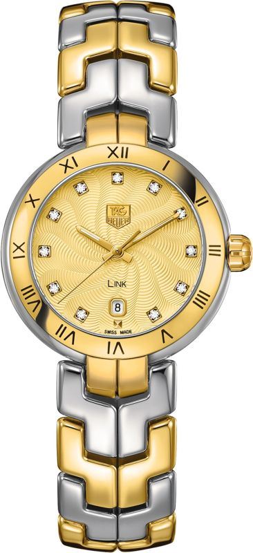 Model: WAT1451.BB0955 - Case,; MATERIALPOLISHED STAINLESS STEEL WITH 18K YELLOW GOLD = [Case Diameter29], [Case BackSolid], [Water Resistant100 Meters - 330 Feet], [CrystalScratch Resistant Sapphire], Dial,; COLORCHAMPAGNE DIAMOND = Movement,; TYPEBATTERY POWERED QUARTZ = Band,; CLASPDEPLOYMENT BUCKLE = [TypePolished Stainless Steel with 18K Yellow Gold], (Usually ships in 1 to 2 weeks.)