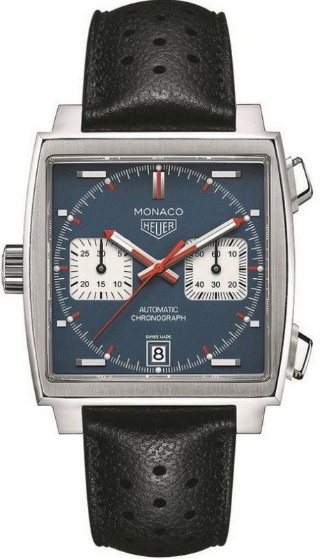 Model: CAW211P.FC6356 - CASE = [Material:Stainless Steel], [Case Diameter:39], [Bezel:Fixed], [Case Back:Solid], [Water Resistant:100 Meters - 330 Feet], [Crystal:Scratch Resistant Sapphire], DIAL = [Color:Blue], MOVEMENT = [Type:Automatic], [Crown:Screw Down], BAND = [Clasp:Folding Clasp], [Type:Black Leather], (In Stock - Ready to ship.)