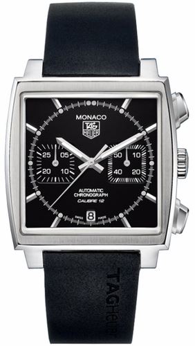 Model: CAW2110.FT6005 - CASE = [Material:Brushed and Polished Stainless Steel], [Case Diameter:39], [Case Thickness:16mm], [Bezel:Fixed], [Case Back:See-thru Sapphire crystal], [Water Resistant:100 Meters - 330 Feet], [Crystal:Scratch Resistant Sapphire], DIAL = [Color:Black Chronograph], MOVEMENT = [Type:Automatic Self Winding Calibre 12], [Crown:Winding], BAND = [Clasp:Deployment Buckle], [Type:Black Rubber], (Usually ships in 1 to 2 weeks.)