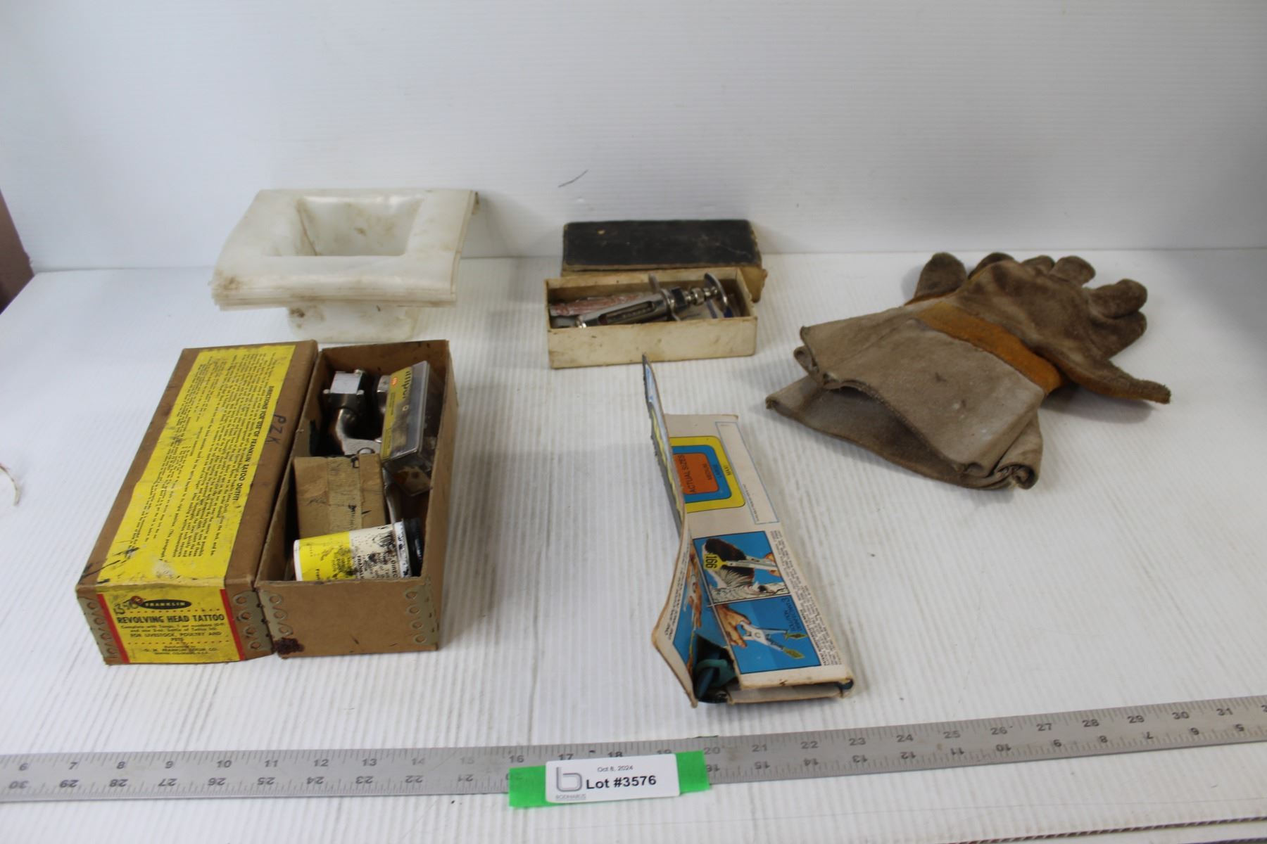 Tag Punchers, Welding Gloves, Syringe, Revolving head Tattoo