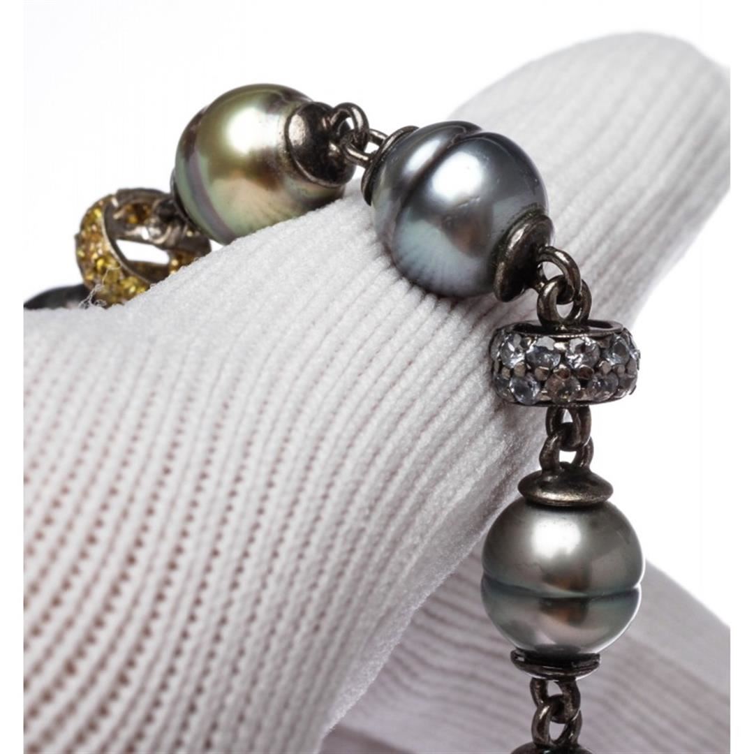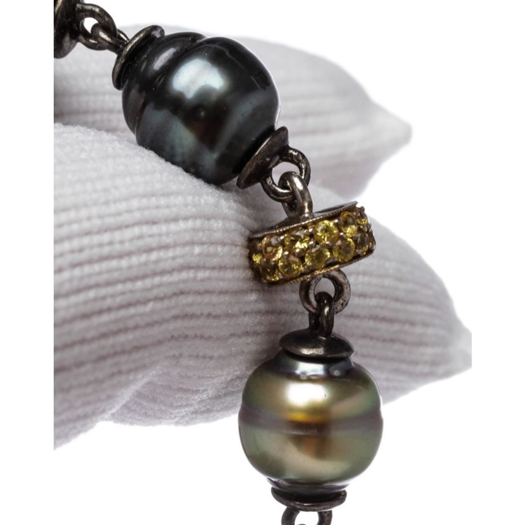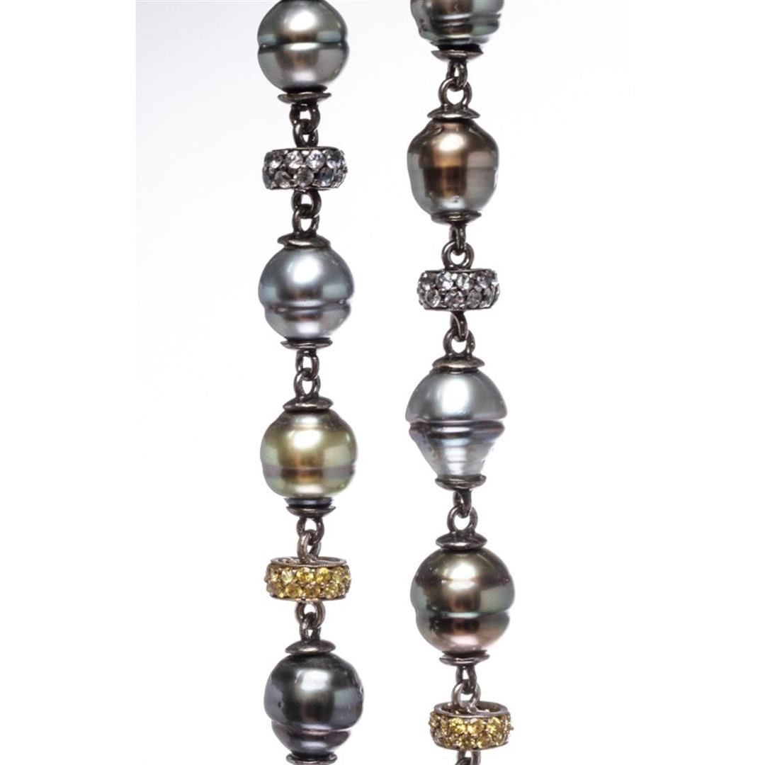 Tahitian Circle Pearl Long Necklace with Stone Embellishments. Item is pre-owned. Item Dimensions: 29"/73.6cm.