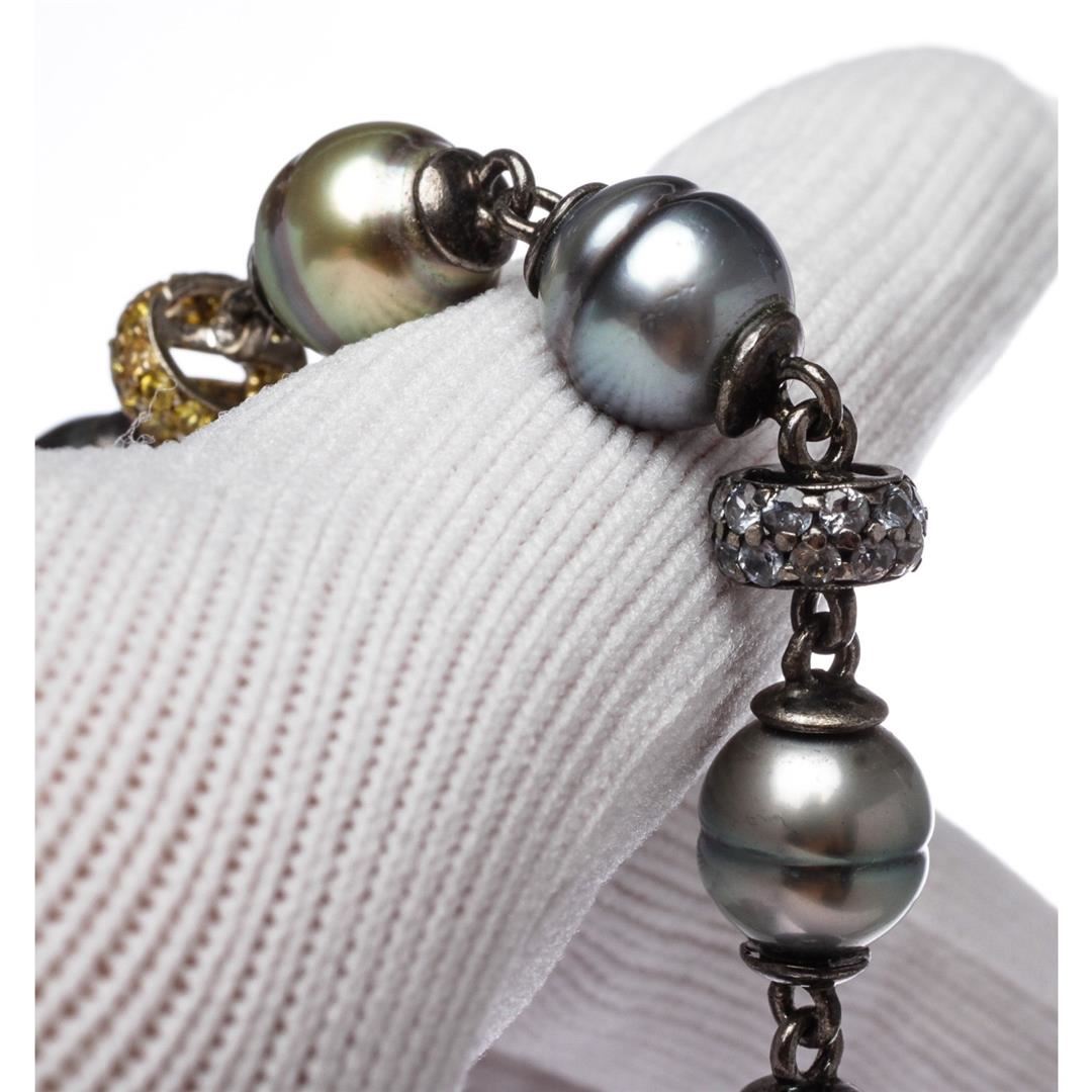 Tahitian Circle Pearl Long Necklace with Stone Embellishments.