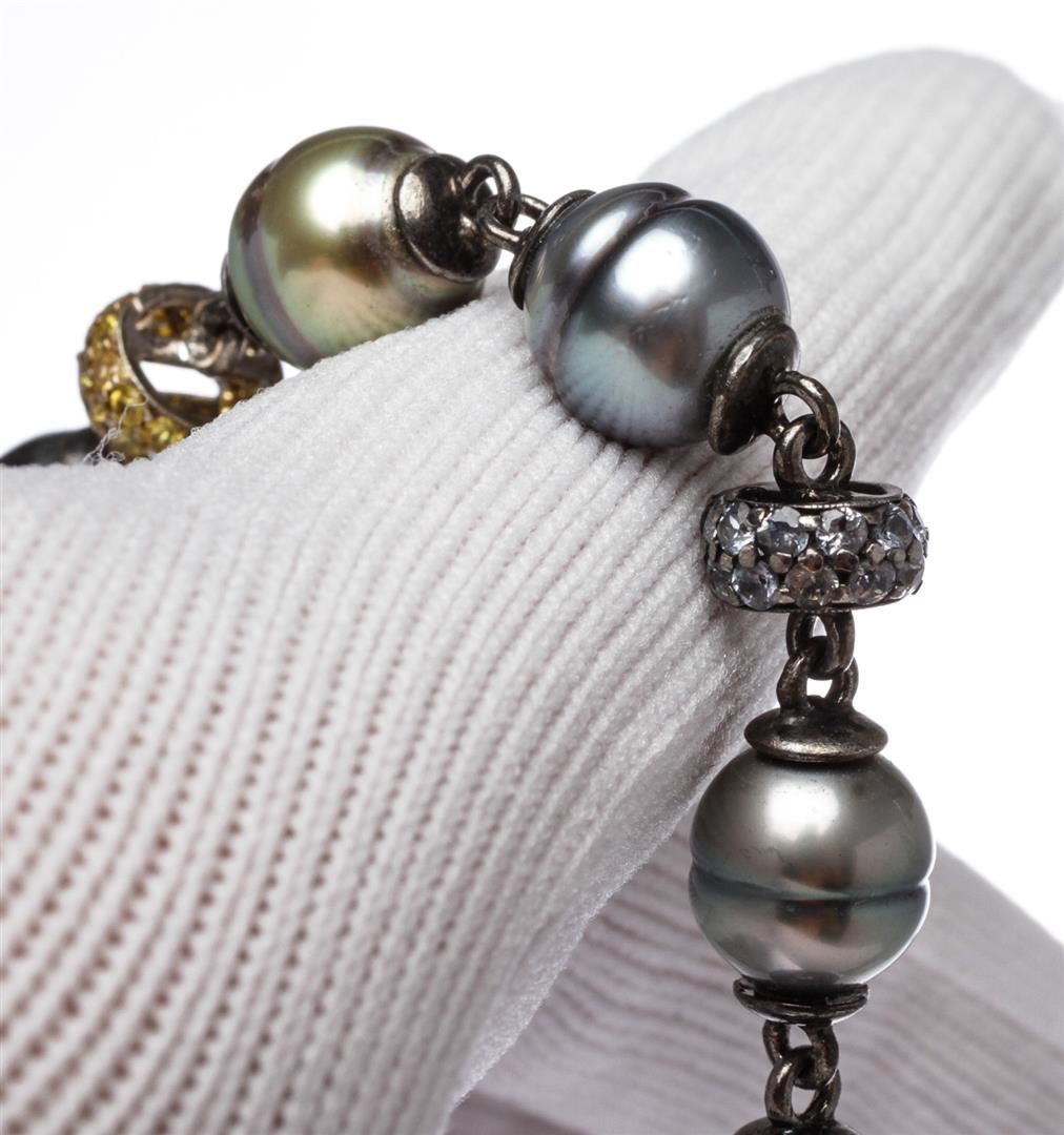 Tahitian Circle Pearl Long Necklace with Stone Embellishments.