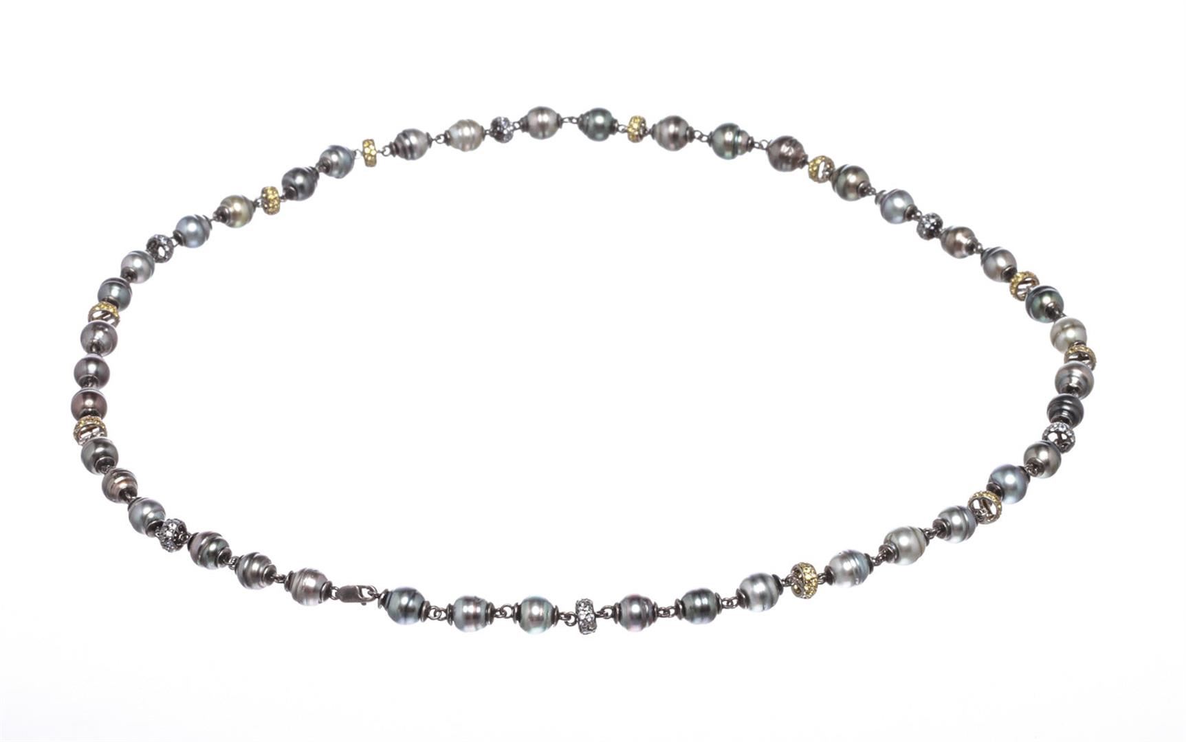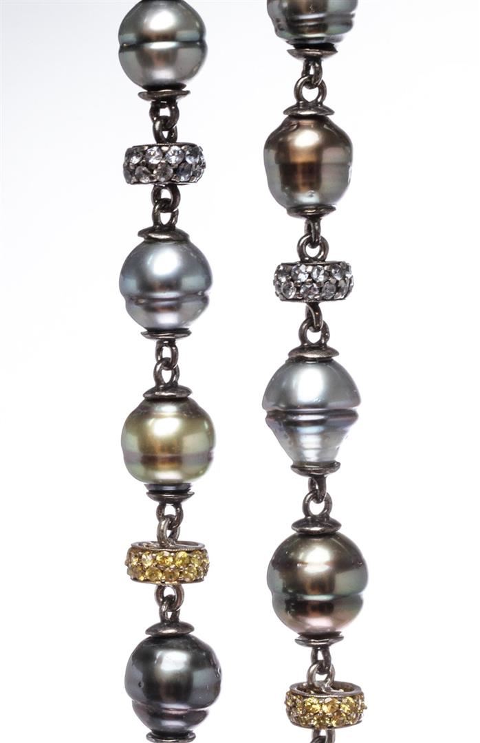 Tahitian Circle Pearl Long Necklace with Stone Embellishments.