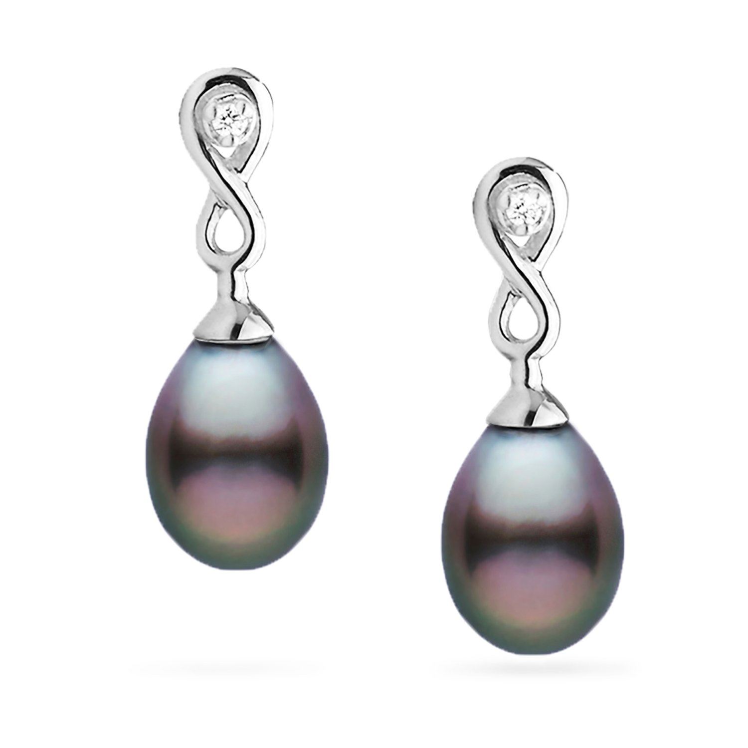 Tahitian Drop-Shape Pearl and Diamond Infinity Dangle Earrings