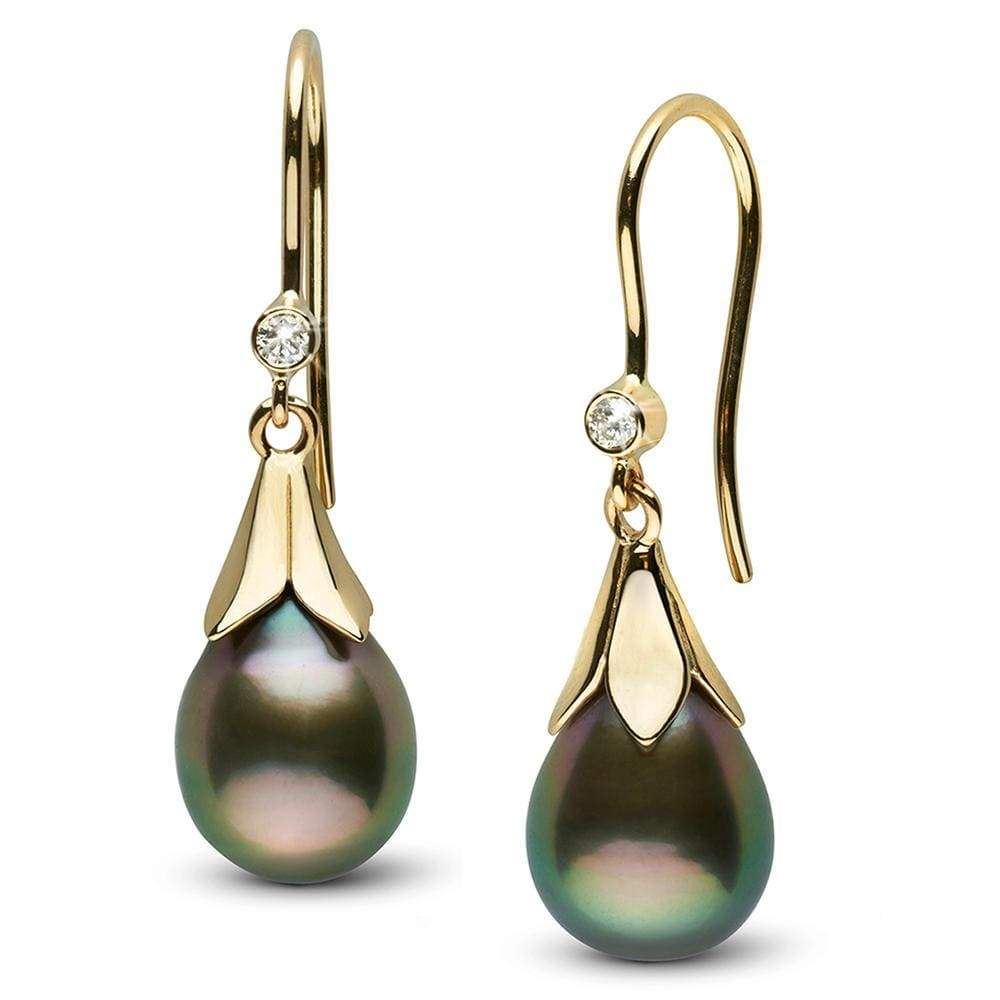 Tahitian Drop-Shape Pearl and Diamond Lily Dangle Earrings
