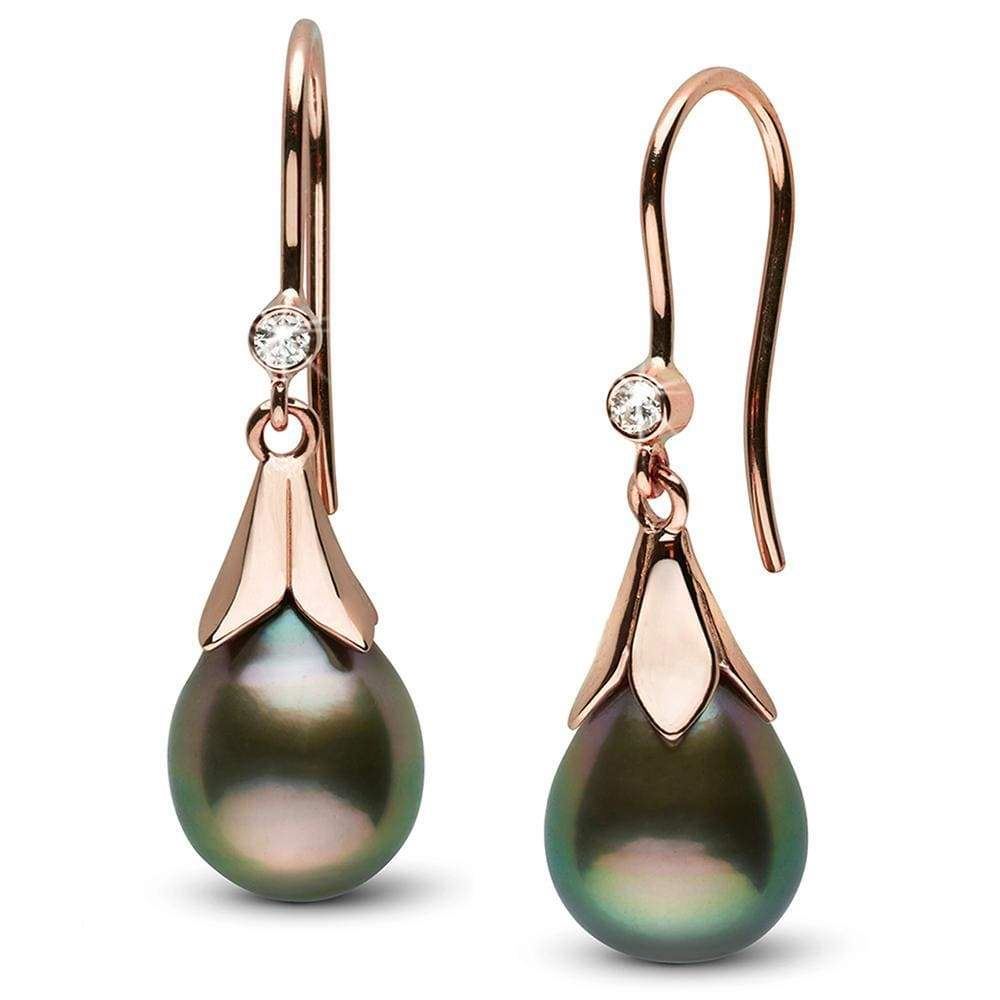 Tahitian Drop-Shape Pearl and Diamond Lily Dangle Earrings