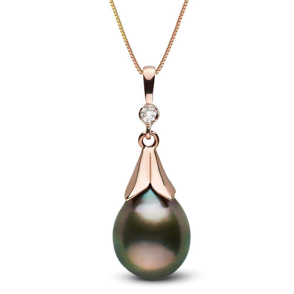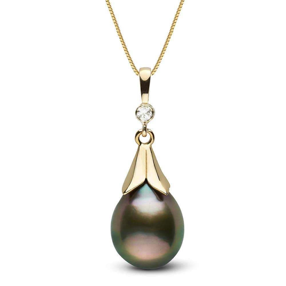 Tahitian Drop-Shape Pearl and Diamond Lily Pendant