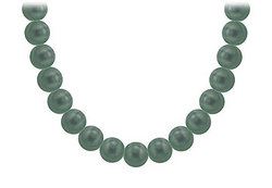 Rich and velvety green round 8.00 - 10.00 mm Tahitian pearls are individually knotted and strung on the finest silk thread. This 18 long lustrous necklace is secured with an 18K yellow gold clasp.