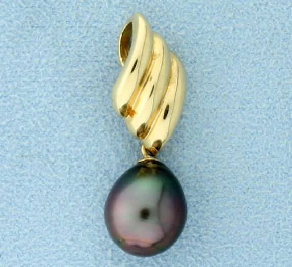 In 14K yellow gold, the pendant is 1 1/4 inches long and the pearl is 12mm long with great luster and color. 3.7g