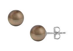 Reflecting a high luster and sheen a pair of flawless round Tahitian pearl stud earrings with a size of 12 mm is made in 18K white gold. These Tahitian pearl studs are available in either screw-back or push-back.