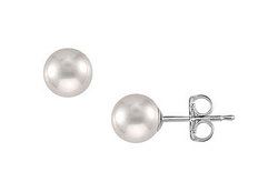 Reflecting a high luster and sheen a pair of flawless round Tahitian pearl stud earrings with a size of 9 mm is made in 18K white gold. These Tahitian pearl studs are available in either screw-back or push-back.