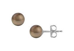 Reflecting a high luster and sheen a pair of flawless round Tahitian pearl stud earrings with a size of 9 mm is made in 18K white gold. These Tahitian pearl studs are available in either screw-back or push-back.