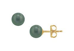 Reflecting a high luster and sheen a pair of flawless round Tahitian pearl stud earrings with a size of 9 mm is made in 18K yellow gold. These Tahitian pearl studs are available in either screw-back or push-back.