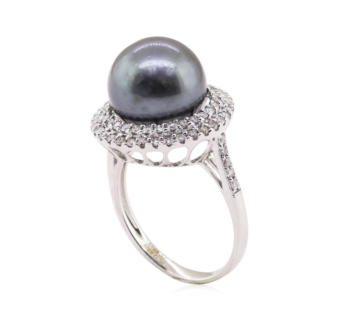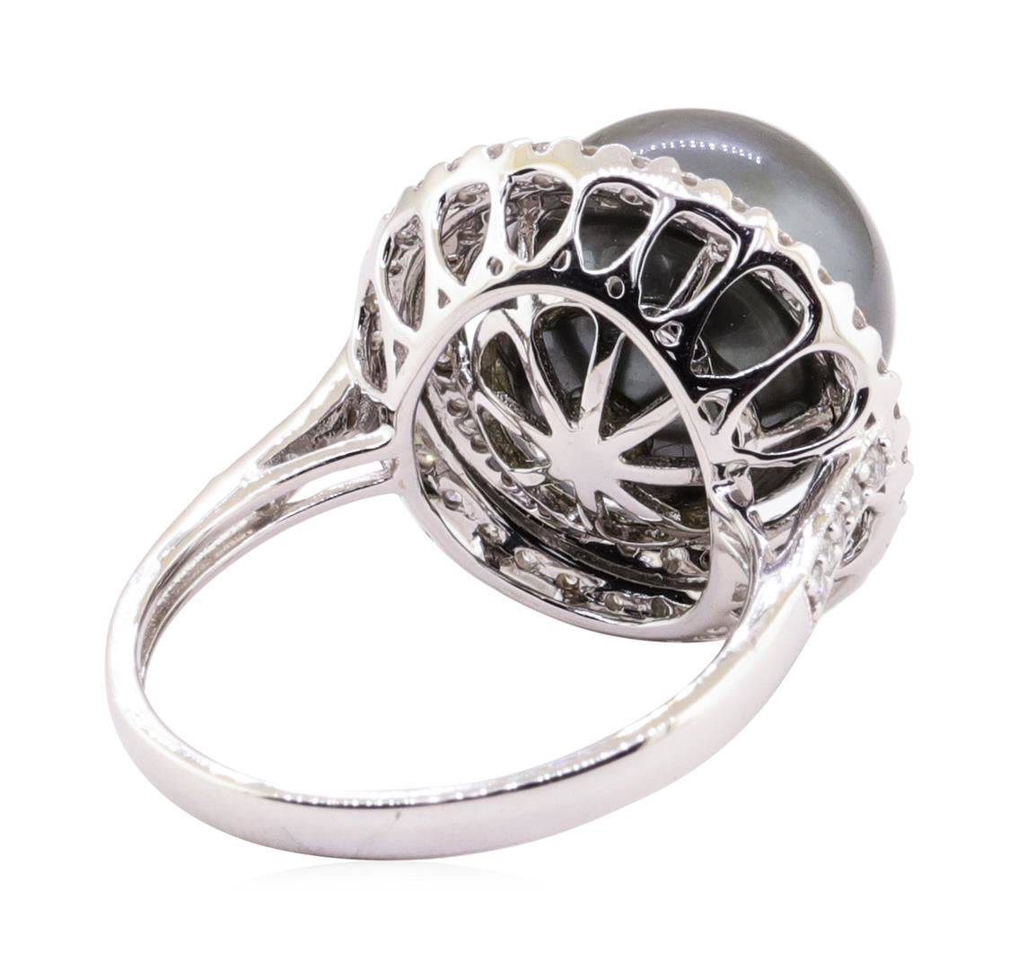 One Tahitian Pearl and Diamond Ring - 18KT White Gold. AIG certified. See Appraisal for more details. AIG Appraised.