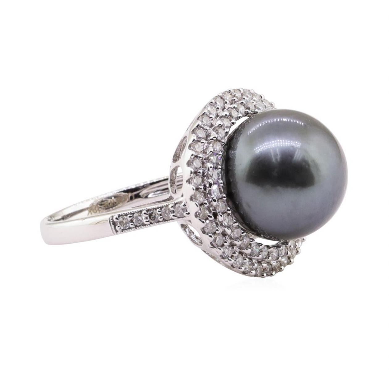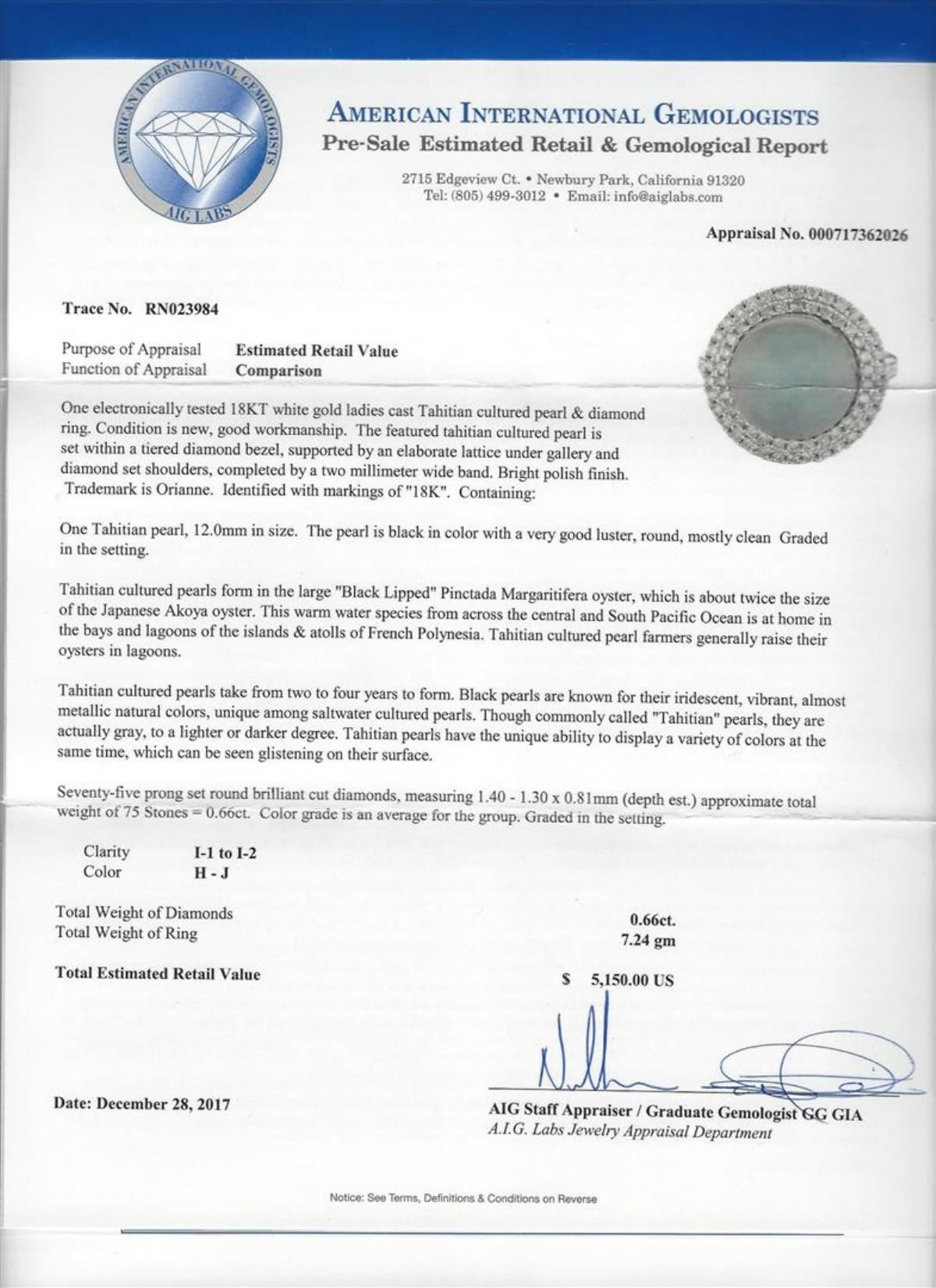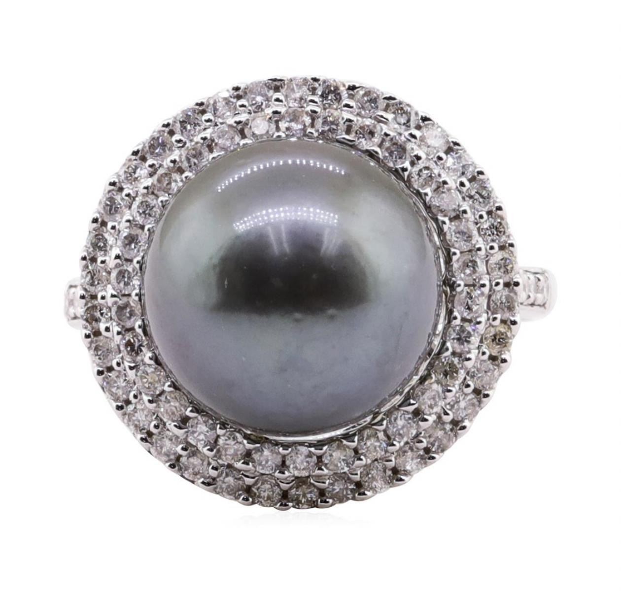 One Tahitian Pearl and Diamond Ring - 18KT White Gold. AIG certified. See Appraisal for more details. AIG Appraised.
