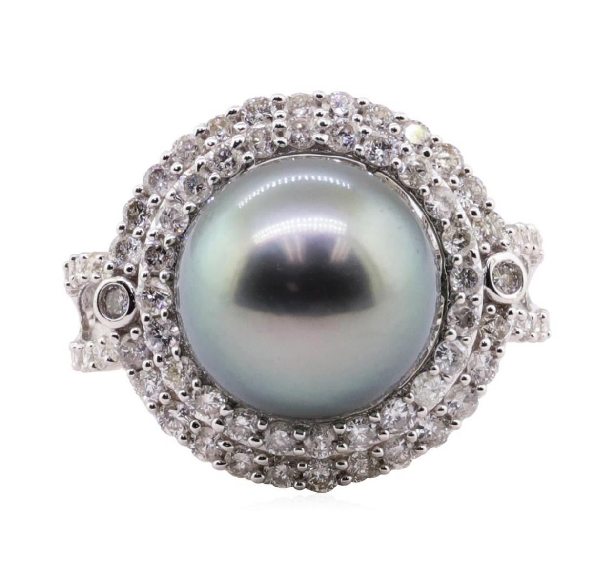 One Tahitian Pearl and Diamond Ring - 18KT White Gold. AIG certified. See Appraisal for more details. AIG Appraised.